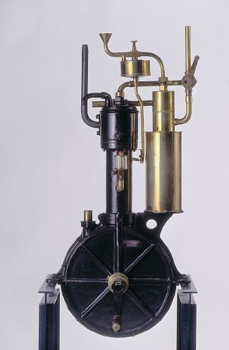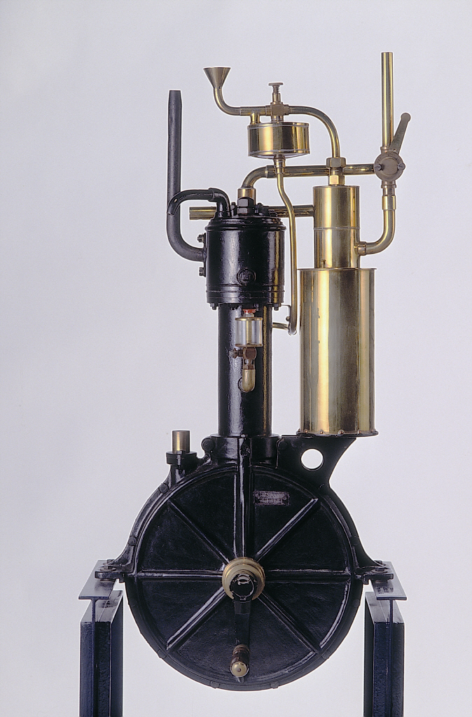Schon in den Pioniertagen des Kraftfahrzeugs war es so, und es ist bis heute so geblieben: Der Antrieb ist der Schlüssel zum Automobill. Der wegen seines charakteristischen Aussehens „Standuhr“ genannte Einzylinder-Motor mit stehendem Zylinder, von Gottlieb Daimler am 3. April 1885 zum Patent angemeldet (Deutsches Reichspatent DRP 34926), ist so gesehen eine Schlüsselerfindung. Weil er für damalige Verhältnisse relativ leistungsfähig und kompakt ist, lässt er die Vision eines Fahrzeugs ohne ziehende Pferde in greifbare Nähe rücken. Noch im gleichen Jahr wird die „Standuhr“ in ein Zweirad eingebaut, im Jahr darauf folgt die Montage in einem vierrädrigen Motorwagen und einem Boot.