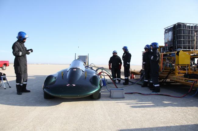 Während der Startphase und für die anfängliche „Betankung“ benötigte das Rekord-Auto Ladestationen für Wasser, Druckluft, elektrischen Strom und LPG. Sie wurden über ein elektrisches Verbindungskabel ans Fahrzeug angeschlossen. So konnte die Reglereinheit des Wagens die einzelnen Befüllungen während der Tank-, Start- und Hochlaufphasen steuern.