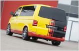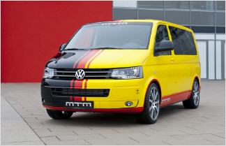 Bei der hat sich unter der Motorhaube einiges getan. Zwar hat Volkswagen den dort installierten Reihen-Fünfzylinder schon vor einiger Zeit aus dem Programm genommen und beim T5 – dem „Bus“ - gegen einen Vierzylinder ersetzt. Dennoch hat das Antriebsaggregat mit einem Zylinder und einem halben Liter Hubraum mehr noch eine zahlenmäßig große Fangemeinde. Und er taugt als Basis für Modifikationen, welche die Leistung merklich steigern. Für einen guten Antritt, den man auch Jogis Jungs während der EM wünschen würde. Im Kreis der von den Kickern der Nationalelf bewegten Sportwagen kann der T 500 leistungsmäßig jedenfalls gut mithalten. Bei 6.900 U/min lässt er muntere 472 Pferde antraben, damit kann man sich auch auf der Autobahn sehen lassen. Das Antriebsaggregat stemmt bei 4.100 U/min ein Drehmoment von 625 Nm. Für solche Kräfte hat MTM das Getriebe modifiziert, sonst bekäme der Bus den gewaltigen Bums wohl kaum auf den Asphalt. Der Vortrieb soll erst bei satten 280 km/h enden. Für angemessene Verzögerung sorgen groß dimensionierte Scheibenbremsen, an der Vorderachse fest im Griff zweier 6-Kolben Festsättel. Auf die 9x20 Zoll MTM Bimoto Felgen sind 275/35 ZR 20 Michelin SuperSport aufgezogen, dazu kommt ein KW Street Comfort Gewindefahrwerk. Unter dem Strich kostet das MTM T500 Ensemble knapp 160.000 Euro. Wer auf die Schwarz-Rot-Gold-Folierung verzichten mag, kann 2.350 Euro sparen.
