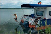 Sein Revier ist nicht der Dschungel, sondern die Müritz. Sein Name ist „Balu“. Balu ist ein Caravan, Modell Hobby Excellent, mit dem Freizeit-Kapitäne seit kurzem ohne Führerschein auf Hausboot-Tour gehen können.