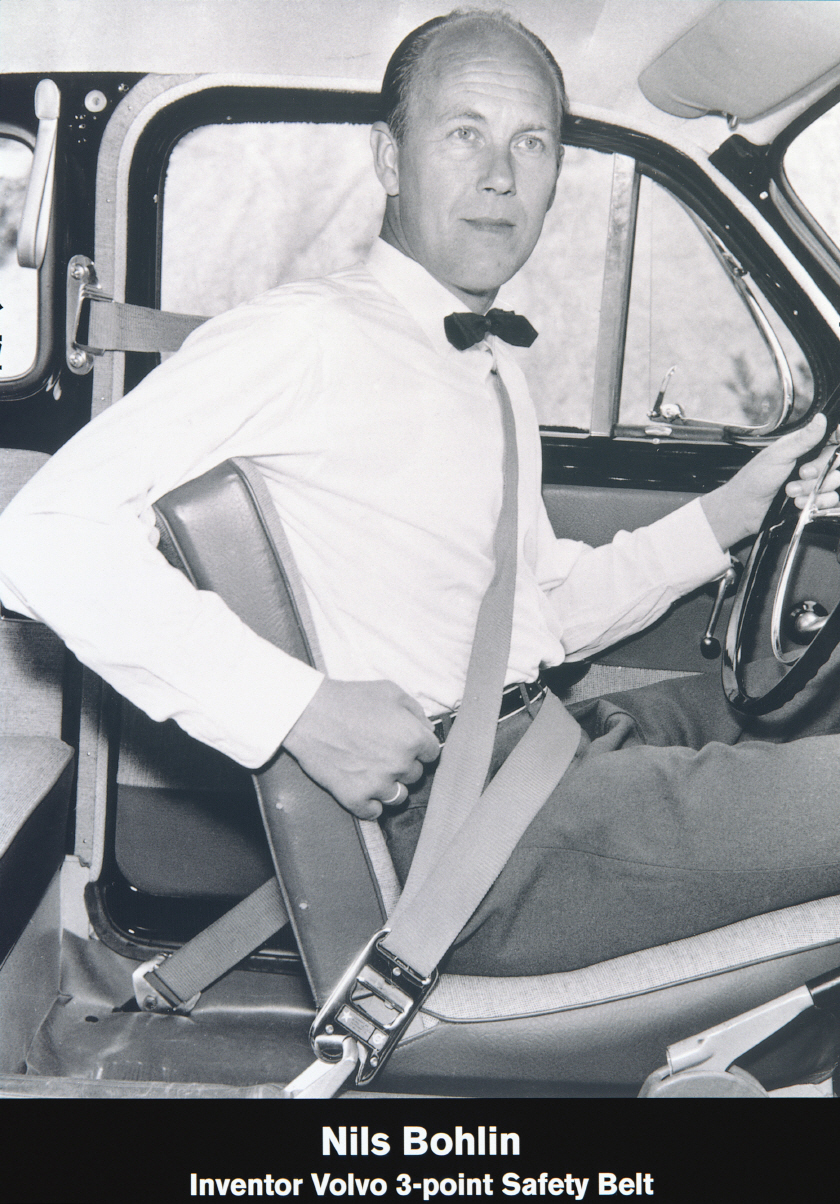 Im Jahre 1959 schreibt der schwedische Automobil-Hersteller Volvo Automobilgeschichte: Am 13. August wird das erste Fahrzeug ausgeliefert, das serienmäßig mit einem Dreipunkt-Sicherheitsgurt, einer Erfindung des Volvo Ingenieurs Nils Bohlin, ausgestattet ist. Es handelt sich um einen Volvo PV 544 („Buckel"). Seither wurden weltweit Millionen Fahrzeuge mit dem Dreipunkt-Gurt ausgestattet, dem bei der Reduzierung schwerer und tödlicher Verkehrsunfälle große Bedeutung zukommt. Auch in Deutschland wird die Erfindung des Volvo Ingenieurs gewürdigt. Das Deutsche Patentamt wählte 1985 den Dreipunkt-Sicherheitsgurt zu einer der acht Erfindungen, die den Menschen in den vergangenen 100 Jahren den größten Nutzen beschert haben.