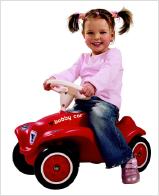 In zweistelliger Millionenzahl ist das BIG-Bobby-Car, wie das Rutschfahrzeug offiziell heißt, bis heute verkauft worden. Damit ist das rund 3,6 Kilogramm leichte und aus rund 30 Einzelteilen bestehende Fahrzeug ein echtes Erfolgsprodukt – und ein größerer Kassenschlager als manches „echte“ Automobil, das von solchen Stückzahlen nur träumen kann. Erstmals der Öffentlichkeit präsentiert wurde der Kleinwagen für den Nachwuchs zur Spielwarenmesse 1972 in Nürnberg. Erfunden hat das beliebte Kinderspielzeug aus Polyethylen Ernst A. Bettag. Im Alter von 24 Jahren hatte der Diplom-Ingenieur die Konkursmasse einer Metallspielwarenfabrik übernommen und stellte zunächst Spielwaren aus Holz und Blech her. Später stieg er auf Kunststoff um, baute Fahrzeuge unterschiedlichster Art, vom Schiff über Motorräder und Bimmelbahnen bis hin zum Traktor und legte damit den Grundstein der heutigen BIG-Spielwarenfabrik GmbH & Co. KG. Vor vier Jahrzehnten suchte Bettag nach einem passenden – also kurzen, knappen und international gut klingenden – Namen für sein Mobil. Er nannte es Bobby-Car und schuf damit einen Gattungsbegriff für Kinderrutschfahrzeuge allgemein. Die Simba Dickie Unternehmensgruppe aus Fürth, unter deren Dach auch Marken wie Schuco und Eichhorn versammelt sind, übernahm nach dem Tode Bettags im Jahre 2003 BIG. Mehr als einhundert verschiedene Varianten des Bobby-Cars gibt es bis heute, alle werden in Burghaslach - zwischen Nürnberg und Würzburg gelegen - gebaut. Feuerwehr- oder Polizeiautos gibt es beispielsweise, Taxen und – in Zusammenarbeit mit Firmen wie Ferrari, Porsche oder Mercedes – markenspezifische Modelle. Obendrein gibt es natürlich auch Zubehör wie Anhänger oder Kufen für den Einsatz des Bobby-Cars im Schnee. Je nach Modell kostet das Kinderspielzeug „made in Germany" zwischen 35 und 60 Euro. Damit ist der Rutscher in der Anschaffung ebenso preiswert wie im Unterhalt. Denn das Bobby-Car verbrennt kein Diesel, kein Benzin – wie vor Jahr und Tag halten kleine Kinderfüßchen für den Antrieb her. Bis zu 100 Kilogramm Belastung sollen die kleinen Kisten aushalten, was der Hersteller schon mal zum Anlass nimmt, einen Elefanten seinen Vorderfuß auf das kleine Vierrad setzen zu lassen. Einige Erwachsene tragen mit den sympathischen Bobby-Cars – ebenso wie ihr Nachwuchs – Meisterschaften auf abgesperrten Gefällstrecken aus, ähnlich wie es früher mit Seifenkisten geschah. Werden die knubbeligen Kleinwagen nicht gerade im harten Rennalltag verheizt, haben sie eine Lebensdauer, die denen ihrer großen Geschwister eindeutig überlegen ist. Gut möglich, dass die kleine roten Flitzer wie „echte“ Oldtimer von Generation zu Generation vererbt werden können.
