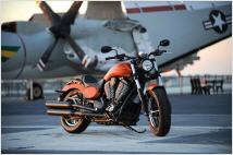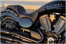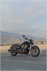 Auch wenn die rund 95 Pferde (70 kW), die der Freedom V-Twin „106“ (inch) aus 1.731 ccm Hubraum traben lässt, heute beileibe niemanden mehr vom Hocker hauen. Da ist der verwöhnte Motorradfahrer ganz andere Leistungsdaten gewohnt. Dennoch dürfte die Kraft für zügige Beschleunigung durchaus ausreichen, und mit 140 Newtonmeter Drehmoment muss sich der „Richter“ auch nicht verstecken. Gute 1,7 Liter Hubraum machen es möglich. Da käme die Victory auch glatt mit weniger als ihren sechs Gängen aus – der sechste Gang ist, für den Einsatz auf der Autobahn oder den Highways dieser Welt, lang übersetzt und damit drehzahlsenkend ausgelegt. Für zeitgemäßen Umgang mit dem Kraftstoff soll die Einspritzanlage sorgen – in Verbindung mit dem 17 Liter fassenden Spritfass dürfte damit eine ausreichende Reichweite garantiert sein.
