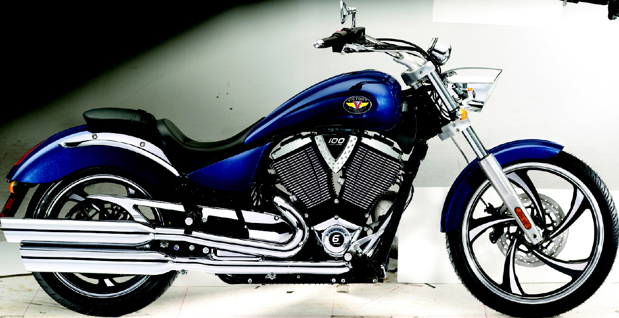 Unbedarfte Zeitgenossen könnten eine Victory möglicherweise mit einer Harley verwechseln. Der Grund dafür liegt in den Motoren der Victorys, die von Polaris-Technikern entwickelt wurden und bei Victory gefertigt und montiert werden: Zum Einsatz kommt ein luftgekühltes V2-Antriebsaggregat mit satten 1.731 ccm großer, luftgekühlter V2-Motor. Die maximale Leistung des Langhubers soll bei heutzutage, im Zeitalter leistungsstarker Big-Bikes, eher bescheidenen 65 kW / 89 PS bei 4.900 U/min liegen, das maximale Drehmoment bei recht anständigen 140 Nm bei 3.250 U/min. In den USA gibt es noch eine zweite, kleinere Ausführung des Triebwerks – die man sich für den deutschen Markt jedoch gespart hat, hier wird nur das hubraumstärkere Aggregat angeboten. Durch das reichlich vorhandene Drehmoment braucht es beim Fahren kaum Gangwechsel, die Antriebsaggregate sind mehr als hinreichend elastisch und durchzugsstark. Ausgleichswellen sorgen dafür, dass die Motorvibrationen – trotz großer Einzelhubräume - nie unangenehm oder lästig werden. Das Auspuffgeräusch ist gedämpft, für Fans satten Sounds vielleicht sogar etwas zu gut gedämpft. Ein (kleines) bisschen mehr Röhren, Grollen und dumpfes Bollern dürfte es vielleicht schon sein.