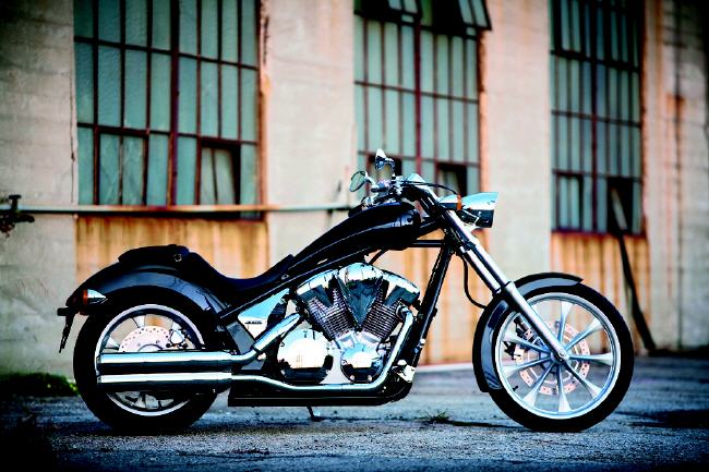 Der Design-Fokus liegt auf der Chopper-typisch langgestreckten Erscheinung, der Radstand beträgt stattliche 1.805 Millimeter. Trotz beherrschendem V-Twin-Motorblock gelang es, eine ungewöhnlich luftige Optik, speziell im vorderen Bereich, zu erzielen. Zum charakteristischen Auftritt tragen der schlanke, nach oben gereckte Benzintank sowie die Doppelsitzbank mit tiefer Mulde für den Fahrer bei. Eine kontrastreiche Kombination bilden der besonders breite 200er Hinterradreifen sowie ein schmaler 90er Vorderrad-Pneu. Ins Auge fällt der formschöne Chrom-Scheinwerfer. Was auf den ersten Blick wie ein Starrheck aussieht, ist eine Aluminium-Zweiarmschwinge, die über ein verdeckt platziertes Monoshock-Federbein abgefedert wird. Zugstufe wie auch Federvorspannung des Stoßdämpfers sind mehrfach einstellbar. Weitere Infos: www.honda.de.