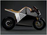 Der geistige Vater und Erfinder des E-Bikes ist Forrest North. Der ist davon überzeugt, dass die Konzeption und Bau eines E-Motorrads erheblich weniger Probleme schaffen als die eines E-Automobils. Denn damit hat North Erfahrung. Bei Tesla Motors, dem derzeit total angesagten amerikanischen Hersteller schnittiger Elektroautos der sportlichen Klasse, war er der Fachmann für die eingesetzten Lithium-Ionen-Akkupacks. Nun macht sich North mit seinem – kleinen – Team an den Bau (s)eines E-Bikes. Dem fehlen – neben dem Getriebe – auch Vergaser oder Einspritzung, obendrein Tank, Auspuff, Wasser- oder Öl-Kühler. Alles Dinge, die (s)ein E-Bike nicht braucht. Was nicht dran ist, kann auch nicht kaputt gehen. Obendrein fehlen Motorvibrationen völlig, gute Voraussetzungen für ermüdungsfreies Fahren. Doch der Fahrspaß währt nicht lange, denn die maximale Reichweite von Mission One soll gerade mal bei 240 Kilometern liegen. Daran ändert auch die Elektro-Bremse, die bei jedem Bremsvorgang die kinetische Energie zur Batterieladung nutzt, nur wenig. Und bei Volllast („Vollgas“ kann man ja schlecht sagen) dürften die Akkus auch deutlich rascher leer bzw. entladen sein. Nach rund zwei Stunden soll der Akku-Pack der Mission One wieder voll – und geladen – sein. Anfang 2010 sollen die ersten einer auf 50 Bikes limitierten Serie ausgeliefert werden. Zu einem atemberaubenden Preis: Rund 54.000,- Euro soll Mission One kosten. Damit dürfte der Nobel-Hobel das ideale Zweirad für umweltbewusste Hollywood-Stars sein.