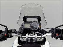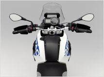 Obendrein gibt es 860 statt 800 mm Sitzhöhe, eine deutlich erhöhte Bodenfreiheit sowie einem Motorschutz aus Aluminium. Ein hohes Windschild, Handprotektoren und die Verlängerung des Kotflügels sollen den Komfort auf längeren Touren erhöhen.