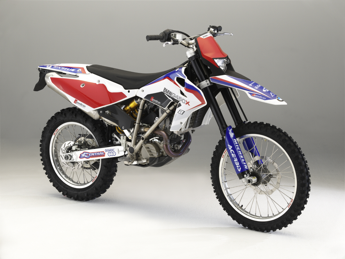 Ihre technische Konzeption als Sport-Enduro verstärkt die ebenfalls mit einer Straßenzulassung versehene G 450 X Factory Replica Edition zusätzlich zur bekannten Serienausstattung mit einem Slip-on-Racing-Schalldämpfer (ohne ABE und Straßenzulassung). Er bietet gegenüber dem Serienschalldämpfer eine Gewichtsersparnis von rund einem Kilogramm. Der als kombinierter Reflexions- und Absorptions-Schalldämpfer konzipierte Endtopf aus Edelstahl erfüllt die FIM-Regularien 2009 und lässt sich einfach montieren. Das Trockengewicht der G 450 X Factory Replica beträgt damit gerade 110 Kilogramm. Dem Einsatz im Rennsport entsprechend verfügt die G 450 X Factory Replica zusätzlich über Kettenschläuche zum Schutz des strapazierten Sekundärtriebs. Die Sonderedition der G 450 X lehnt sich mit dem Factory Sticker Kit optisch an die Werksrenner des Teams BMW Motorrad Motorsport an. Die BMW G 450 X Factory Replica Edition wird nur begrenzte Zeit vom 15.07.2009 bis 30.09.2009 angeboten. Der Preis beträgt 8.750.— Euro (plus Nebenkosten). Kunden, die ihre G 450 X im Rennsport einsetzen, bietet BMW Motorrad zwei Zubehör-Pakete für den Renneinsatz an. Der Satz „Grundausrüstung G 450 X“ beinhaltet vor allem Verschleißteile, wie Brems- und Kupplungsbeläge, Kette und Kettenblatt, Luft- und Ölfilter, Zündkerze oder auch Kupplungs- und Handbremshebel zum Paket. Diese Teile werden beim harten Wettbewerbseinsatz besonders beansprucht. Im Wettbewerb ist auch es erforderlich, schnell auf wechselnde Gegebenheiten reagieren zu können. Deshalb ist üblicherweise ein zweiter Satz Räder im Rennsport-Gepäck. Für diesen Zweck bietet BMW Motorrad das Paket „Räder G 450 X“ an. Es umfasst das Vorder- und Hinterrad, Speichen, Bremsscheiben, Reifenhalter und vieles mehr.