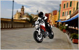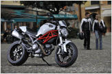 Ducatis legendäre Modellfamilie bekommt mit der Monster 796 Zuwachs in der mittleren Hubraum-Klasse. Der neue 796 Desmodue-Motor leistet 64 kW / 87 PS, was in Verbindung mit einem Trockengewicht von 169 kg reichlich Fahrspaß verspricht. Wie bei alle Monster-Modellen ist ABS serienmäßig. Die Monster 796 mit ihrer Einarmschwinge kommt ab Werk mit Bikini-Windschild und hinterer Soziussitzabdeckung in Fahrzeugfarbe. Die neu geformte Sitzbank soll für mehr Fahrkomfort sorgen, rote Ziernähte setzen Akzente. Der neue Heckrahmen ist für die Montage optionaler Soziushaltegriffe ausgelegt. Die geben dem Passagier sicheren Halt und sollen die schlanke Linienführung des Fahrzeughecks optisch nicht stören. Die um zehn mm in der Höhe reduzierte Sitzbank soll zusammen mit dem neuen, 20 Millimeter höheren Lenker eine entspannte Sitzposition erlauben. Die neue Duc gibt es in drei Farben: Im klassischen Ducati Rot, Arctic White Silk und Diamond Black Silk, dazu gibt es den traditionellen roten Gitterrohrrahmen und schwarze Felgen.
