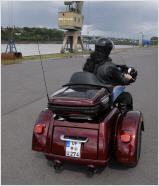 Aber von Anfang an. Als mir mein Freund von der Möglichkeit berichtete, mal ein Trike von Harley-Davidson fahren zu dürfen, war mein eigenes Interesse zunächst doch eher mäßig. Schließlich habe ich keinen Motorrad-Führerschein und wäre deswegen zum Dasein als frierende Sozia verdonnert gewesen. So meinte ich - aber, falsch gedacht.