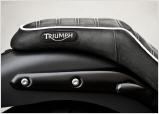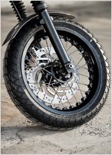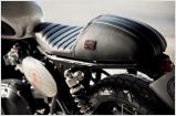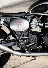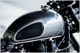 Einen völlig anderen Weg schlägt die Triumph Scrambler Steve ein. Optisch springt die aufwändige Lackierung ins Auge, die sich an dem Helm orientiert, den Hollywood-Legende Steve McQueen 1964 bei den International Six Days in Erfurt trug. Ein von Hand genähter Sattel und ein völlig neu gestaltetes Heck zieren das edle Einzelstück. Die Scrambler rollt auf Hardcore-Stollenreifen und entlässt ihren kernigen Sound über eine schlanke, stilvolle Auspuffanlage.