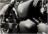 Eine kleine Zeitreise kann man auf der Triumph Seventies Racer erleben, die sich auch vor dem legendären Londoner Ace Café gut machen würde, mit knisternden Kühlrippen geparkt. Aus einer gemütlichen Bonneville hat Rock’N’Ride mit Chromex beschichteten Teilen wie dem Tank einen scharfen Café Racer reinsten Wassers im typischen London-Style gemacht. Die von Hand gefertigte Höcker-Sitzbank aus schwarzem Leder mit rotem Kederband und eingenähtem Union Jack verleiht dem Bike den letzten Schliff.