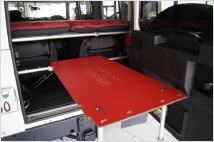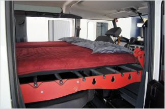 In weniger als einer Minute soll das Modul im Fahrzeug installiert sein. Etwa zwei Minuten soll es dauern, bis die Tische zum Kochen oder Essen für bis zu vier Personen hergerichtet sind. Rund fünf Minuten muss man einplanen, wenn das Doppelbett für die Nachtruhe bereitet wird.