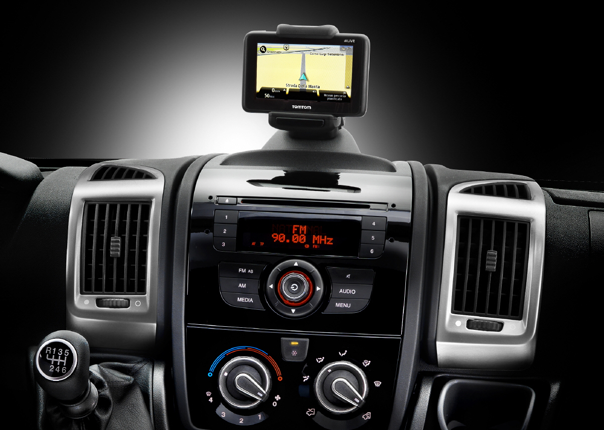 Auch den Innenraum des neuen Ducato hat Fiat aufgewertet, die Mittelkonsole etwa wurde komplett neu gestaltet. Die, je nach Kundenwunsch, beispielsweise schwarzglänzende oder sogar wie Walnussholz aussehende Oberfläche soll eine für einen Transporter ungewöhnliche Qualitätsanmutung bieten. Im oberen Teil der Mittelkonsole ist die Dockingstation für das herausnehmbare Navigationssystem integriert. Es bildet die Schaltstation des neuen Blue&Me TomTom Live, über dessen Bildschirm neben der Navigation auch Telefongespräche und die Wiedergabe von Musik von externen Datenträgern gesteuert werden.