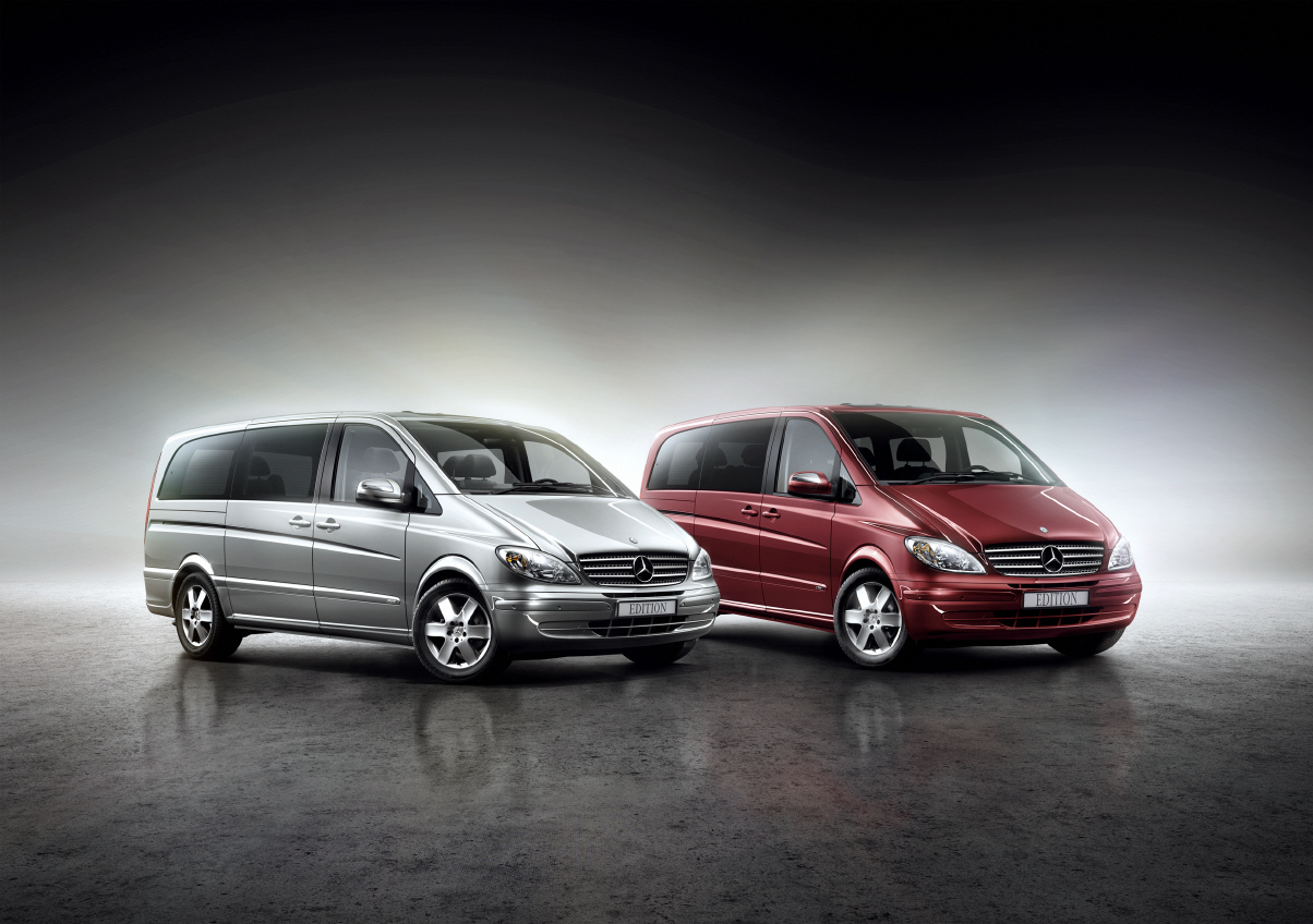 Jetzt kommt eine neue attraktive Ausstattungslinie hinzu. Pünktlich zum Frühjahrsbeginn bietet der Mercedes-Benz Vertrieb Deutschland den Viano „Edition“ an. Die Ausstattungen des Viano „Edition“ basieren auf den Basisvarianten „Trend“ und „Ambiente“ und sind in allen drei Fahrzeuglängen verfügbar. Im Viano „Edition“, der als 2.2 CDI oder 3.0 CDI mit Automatik-Getriebe zu haben ist, sind die beliebtesten Wunschausstattungen der Mercedes-Kunden serienmäßig integriert. So beispielsweise 17-Zoll-Leichtmetallfelgen, die Einparkhilfe Parktronic und frei wählbare Metalliclackierungen. Zur Ausstattung zählen auch elektrisch anklappbare Außenspiegel, Colorverglasung im Fond und beim Modell „Ambiente Edition“ die zusätzliche Schiebtür links. Im Innenraum des Viano „Edition“ ergänzen unter anderem die Sitzheizung für Fahrer und Beifahrer, Tempomat und Klimaanlage auch im Fond, das Multifunktionslenkrad sowie wärmedämmendes Glas an der Frontscheibe, die Ausstattung. Darüber hinaus lässt sich der Gesamtumfang des Viano „Edition“ durch zusätzliche Sonderausstattungen erweitern, die preislich interessant gestaltet sind. So lassen sich beispielsweise noch Dreier-Sitzbänke für die erste und zweite Reihe, Dachreling, CD-Wechsler ergänzen oder eine Anhängerkupplung, falls der Wohnwagen oder Pferdeanhänger mit in den Urlaub soll.