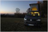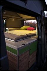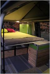 Optional sorgt das von den Hagenern eigens entwickelte Schlafdach, das mit seiner Open Sky Luke Cabrio-Feeling im VW T5 schafft, für Stehhöhe im gesamten Fahrzeug und für zwei zusätzliche Schlafplätze im "Obergeschoss". Der Stoffbalg im vorderen Dachbereich lässt sich per Reissverschluss öffnen, so entsteht eine großflächige Foto- und Beobachtungsluke. Die Dachluke kann zum Heck hin geöffnet werden - und schafft so eine Liegefläche mit romantischem Ausblick auf den Sternenhimmel. Da die Open Sky Luke auch bei geschlossenem Dach geöffnet werden kann, kommt im TECAMP während der Fahrt echter Open-Air-Genuss auf.
