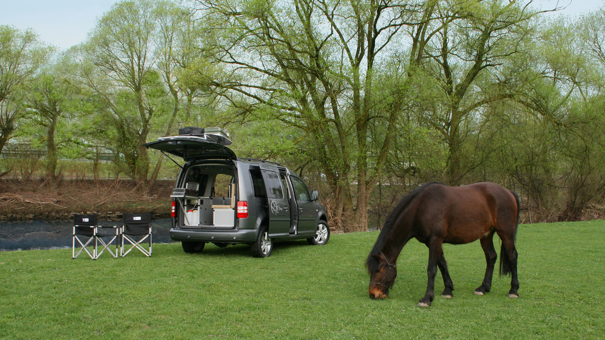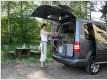Auf Wunsch rüstet Terra Camper den Caddy, der auch mit Allradantrieb zu haben ist, für Reisende, die mal abseits des Asphalts unterwegs oder einen Strand erreichen wollen, auch Schlechtwege-tauglich um. Dafür stehen Unterfahrschutz, Höherlegungsfedern und grobstollige Bereifung in einem Umbau der Firma Seikel zur Verfügung. Passend zur Allradvariante bieten die Hagener einen Heckträger an, der für Aufnahme eines Reserverads und eines 20 Liter fassenden Benzinkanister ausgelegt ist. So wird aus dem Mini-Van ein Allroundfahrzeug für Alltag, Freizeit und Urlaub, das auch Ausflüge in leichtes Gelände nicht übel nimmt und so eine Alternative zu SUV und Geländewagen als Basisfahrzeug darstellt. Der Preis des Terra Camper Temax: Ab 25.900 Euro auf der Basis des fünfsitzigen VW Caddy Maxi Startline 1.2 TSI.