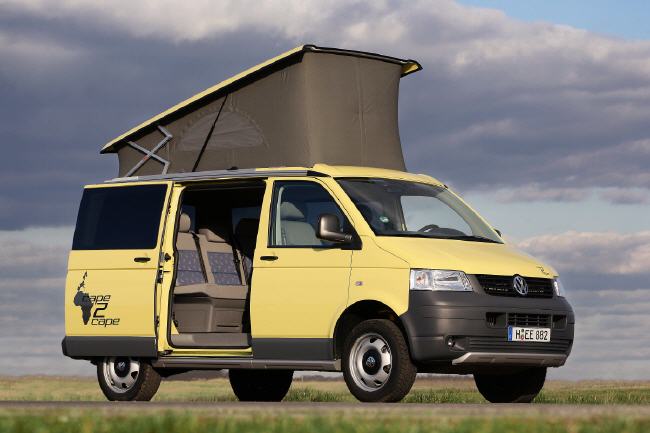 Mit dem Sondermodell Cape2Cape auf der Basis des California Beach mit manuellem Aufstelldach spinnt Volkswagen Nutzfahrzeuge den Globetrotter-Gedanken konsequent weiter. Inspiriert zum Fahrzeug mit dem beziehungsreichen Namen wurden die Hannoveraner durch die 24.000 Kilometer lange, neunwöchige Tour des Extremsportlers Joachim Franz. Die Extremtour begann am Nordkap und endete in Kapstadt. Begleitet wurde Franz von fünf gelben California Beach, deren Optik konsequent robust gehalten wurde. Auch das Sondermodell Cape2Cape richtet sich bewusst an aktive Freizeitsportler und abenteuerlustige Outdoor-Urlauber, die für ihre Aktivitäten ein passendes Fahrzeug suchen und vor Ort übernachten wollen. Wahlweise ist der Cape2Cape mit oder ohne Allradantrieb erhältlich, der Camper rollt auf 17 Zoll großen Stahlfelgen mit 235/55 R 17-Bereifung. Auf den Einsatz abseits befestigter Straßen ist der California mit unlackierte Stoßfängern und Seitenschwellern gut vorbereitet. Eine Höherlegung und Geländereifen sind zusammen mit einer Differentialsperre und einem Luftfilter für staubreiche Regionen für die allradgetriebenen 4MOTION-Modelle optional erhältlich. Serienmäßig sind diverse Komfort-Features an Bord. Eine Klimaanlage und Sonnenschutzfolien an den Fenstern sorgen für Wohlfühltemperaturen im Innenraum. Die verschiebbare Dreier-Sitzbank mit Liegefunktion ermöglicht die Reise von bis zu fünf Personen. Das Elektrikpaket sowie eine Zentralverriegelung mit Funkfernbedienung erleichtern den Einsatz im Alltag, der Berganfahr-Assistent unterstützt den Fahrer beim „Spiel“ mit Kupplung und Betriebsbremse. Der Einstiegspreis des Cape2Cape California Beach – für den alle TDI-Motoren von 62 bis 128 kW verfügbar sind - liegt bei 39.300.— Euro brutto (für den 62 kW-TDI). Der Preisvorteil des Sondermodells beträgt gegenüber einem gleichwertig ausgestatteten Serienmodell 1.598.— Euro. Bis zu 2.782.— Euro sind es, wenn alle optionalen Pakete (wie zum Beispiel Komfort- und Funktionspaket) mitbestellt werden.