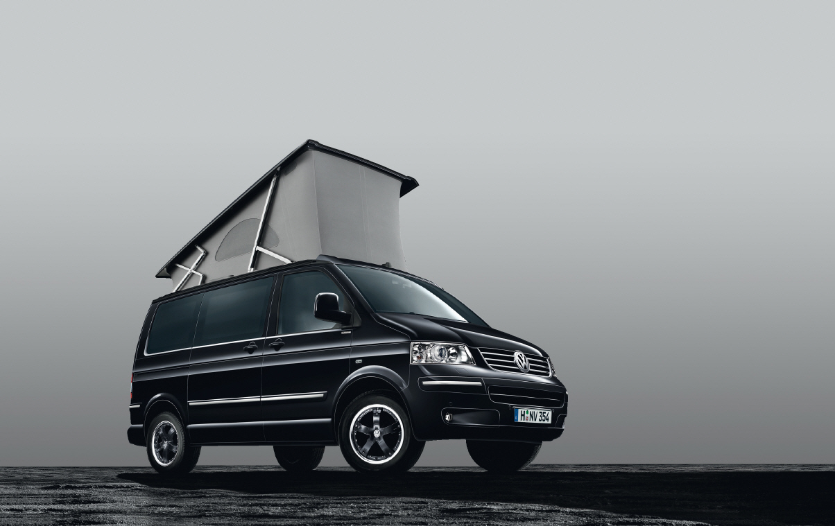 Basis für das Sondermodell ist der California Comfortline mit elektrohydraulischem Aufstelldach. Gänzlich schwarz lackiert sorgen eine zusätzlich getönte Privacy-Verglasung, abgedunkelte Rückleuchten und schwarze, 18 Zoll große Leichtmetallräder für ein einheitliches Gesamtbild. Ein Chrompaket mit umlaufender Leiste und die Bi-Xenon-Scheinwerfer arbeiten die Konturen des California heraus.