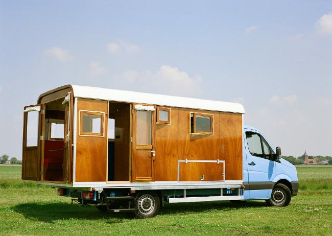 Denn Tonke baut in guter alter Handarbeit Reisemobile aus Holz, Basis sind moderne Fahrgestelle mit zwei bis drei Sitzplätzen im Fahrerhaus. Zum Einsatz kommen Renault Master, Volkswagen Crafter oder Mercedes Sprinter. Die Wohnkabinen, die über keinen Durchgang zum Fahrerhaus verfügen, lassen sich in rund 15 Minuten absetzen. So kann die Wohneinheit außerhalb der Urlaubszeit im Garten abgestellt werden, als exklusives Gästezimmer oder als Arbeitsplatz im Grünen.