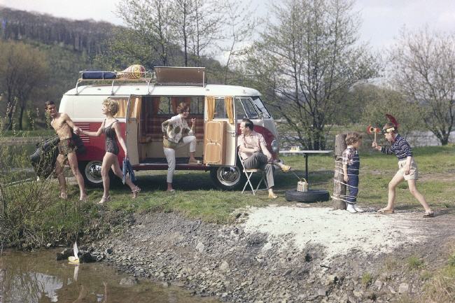 Wir schreiben das Jahr 1951. Die Bundesrepublik Deutschland und die D-Mark sind drei Jahre alt. Arbeitslosigkeit, Kriegsgefangene und Wohnungsnot beherrschen die Schlagzeilen der Zeit. Auf der politischen Bühne bewegt sich Konrad Adenauer, "der Alte", als Bundeskanzler und Außenminister. Sein erster offizieller Staatsbesuch: eine Reise nach Italien. Vorreiter einer Massenbewegung? Nein, noch nicht! Einem Arbeiter von Volkswagen stehen zwei Wochen Urlaub zu. Er verbringt sie daheim, möglicherweise im eigenen Garten oder besucht vielleicht die erste IAA in Frankfurt. Deutschland steht am Anfang der Massenmotorisierung. Am Anfang der 1950er-Jahre kommt auf 100 Bundesbürger gerade mal ein Auto. Kein Wunder also, dass der Gedanke zur automobilen „Zweckentfremdung“ vorerst nicht in den eigenen Reihen reift. Vielmehr ist es ein britischer Offizier, der bei Westfalia eine Wohneinrichtung für seinen Volkswagen Transporter ordert: Die Campingbox. 1953 gibt es bereits eine Millionen Personenwagen in der Republik, die Absatzkurve steigt stetig an. Im Jahre 1957 nimmt Volkswagen den "VW-Campingwagen", wie er jetzt heißt, ins eigene Lieferprogramm auf. Den Ausbau gibt es weiterhin von Westfalia. Gerade mal weitere zwei Jahre später feiert man das erste Jubiläum: 1.000 Volkswagen Campingwagen.