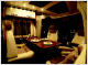 Das Interieur kombiniert Klassisches mit moderner Inspiration. Die dunklen Möbel schaffen ein luxuriöses Gefühl und sind kombiniert mit beigefarbenen Türen, die dem Interieur ein Frische und Helligkeit verleihen. Der Blick für Details zeigt sich in Chromgriffen, Möbeldetails aus massivem Holz, Kombinationen aus LED-Leuchten und abgeblendetem Plexiglas. Kontrastkombinationen von beigefarbenen Türen und der schwarzen Arbeitsoberflächen (Küche, Tisch und Bad), zwischen matten und hoch polierten Oberflächen oder zwischen dem Klassischen und Modernen sprechen für einen hochwertigen Stil. Die Küche in L-Form bietet viel Stauraum in den Hängeschränken und Schubladen. Dazu gibt es einen 150 Liter fassenden Thetford Kühlschrank mit Gefrierfach in schwarz und eine abgerundete Spüle. Im Wohnraum gibt es einen Essbereich mit einem Sofa an der rechten Seite. Die Sitze im Essbereich können in ein bequemes Einzelbett umgerüstet werden.