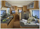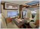 Teilintegrierte Reisemobile mit einer zusätzlichen Schlafmöglichkeit in Form eines Hubbettes liegen im Trend. Mit dem Globe4 schickt Dethleffs ein attraktiv gestyltes Modell in vier Grundrissvarianten ins Rennen. Die 195 x 145 cm große, zusätzliche Schlafstatt ist direkt hinter dem Fahrerhaus quer installiert, Sie lässt sich über einen Schwenkmechanismus einfach absenken und wieder in ihrer Grundstellung unter dem Dach arretieren. Auch unter dem hoch geschwenkten Hubbett kann man stehen ohne den Kopf einzuziehen. Das ist wichtig, da bei allen Globe4 Grundrissen in diesem Bereich die Sitzgruppe – in Form einer Halbdinette – und gegenüber der Küchenblock angeordnet sind. Damit sind die Gemeinsamkeit der vier angebotenen Modelle angesprochen. Der dahinter liegende Raum ist jeweils nach den bekannten, individuellen Vorlieben der Reisemobilfahrer gestaltet: Mit einem Längsbett und Längstoilettenraum bei den Modellen T 5901-4 und T 6401-4 oder einem Quer-Doppelbett im T 6471-4. Das vierte Modell, der T 6911-4, bietet zwei Einzelbetten.