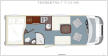Zweites neues Modell aus Sprendlingen ist der Terrestra T 650 EB, ebenfalls mit einem Fiat Ducato als Unterbau. Der Teilintegrierte ergänzt die Modellpalette der Rheinhessen um einen kompakten Komfort-Grundriss. Auf nur 682 cm Gesamtlänge bietet das Fahrzeug eine Kombination von Einzelbetten (205 x 85 cm bzw. 185 x 85 cm) im Heck mit darunter positionierter Garage. Im vorderen Bereich gibt es eine L-Sitzbank mit zusätzlicher Einzelsitzbank. Über dem Zugang zum Bett kann mit einem Zusatzpolster aus den Einzelbetten ein klassisches Doppelbett gebaut werden. Unter den Betten sind der Kleiderschrank und ein zusätzliches Staufach untergebracht. Küchenblock und Waschraum mit integrierter Duschkabine im Mittelwagen komplettieren die Raumaufteilung. Wie alle Terrestra Teilintegrierten rollt auch der jüngste Spross der Modellfamilie auf dem Tiefrahmen-Chassis von Alko mit einer Spurweite von 1.980 mm. Die hagelgeschützte GfK-Karosserie mit holzfreien Wänden bietet einen beheizten Doppelboden mit zusätzlichem Stauraum. Der Grundpreis des neuen Modells liegt bei 54.990 Euro.