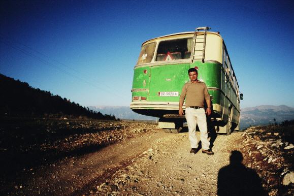 Wir übernachten in einem lichten Laubwäldchen auf der Passhöhe. Unerwartet bekommen wir Besuch. Jeden Tag fährt ein Linienbus, in Europa ausgemusterte Busse von ca. 1970, zwischen Berat und die zahlreichen Dörfchen. Ohne Allrad meistert der Fahrer Tag für Tag die Strecke. Als er uns bemerkt, hält er auch prompt an.