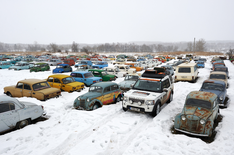 Unser Ziel lag am Ende einer zerfurchten, von tiefem Schnee bedeckten Piste. Ein Kinderspiel für den Discovery. Dort erwartete uns die einzigartige Autosammlung von Mikhail Krasinets, der rund 300 Exemplare sowjetischer Autos zusammengetragen hat. Aufgereiht auf zwei Feldern steht dort so ziemlich alles, was die ehemalige sowjetische Autoindustrie hervorgebracht hat: vom Moskvich 1500 für den Normalbürger bis zum 1961 Gaz Chaika, der den höchsten Funktionären der Kommunistischen Partei vorbehalten war.