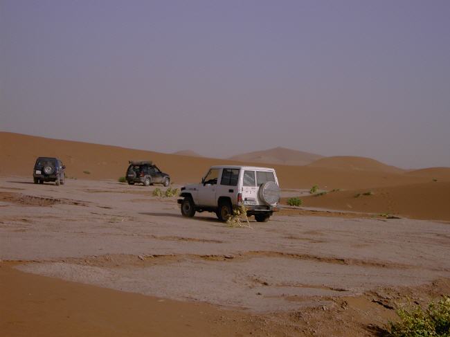 In den nächsten Tagen fahren wir südwestlich in Richtung Fez, der ältesten der 4 Königsstädte. Nach einem Streifzug durch das quirlige Labyrinth der Altstadt zieht es uns aber wieder in die Ruhe und Weite der Wüste und wir folgen den einsamen Pisten entlang der algerischen Grenze. Steinige Schotterpisten oder tiefsandige Streckenabschnitte entlang der Dünen fordern unsere Fahrkünste heraus. Sonnenuntergänge mit beeindruckendem Farbenspiel entschädigen uns reichlich für das eine oder andere Mal freischaufeln.