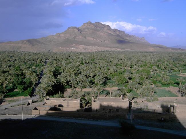 Nach einigen Tagen erreichen wir das fruchtbare Draa-Tal, grün und mit Palmenhainen aus tausenden Dattelpalmen - ganz der Gegensatz zu den kargen und einsamen Gegenden, aus denen wir kommen.