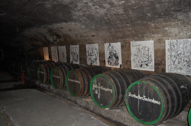 langen – Gewölben unterkellert. Eine Führung der unterirdischen Art durch das mystische Halbdunkel der Traben-Trarbacher Unterwelt und der Kellergewölbe bietet spannende Einblicke. Zu entdecken gibt es die Geschichte des historischen Weinbaues und der alten Kellertechnik zur Bereitung des (wie die Moselaner sagen) edelsten Weines der Welt, des Rieslings.
