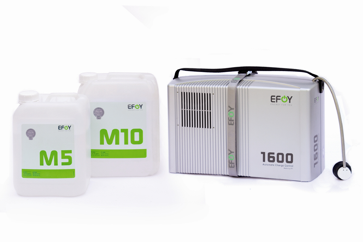 Die Efoy-Brennstoffzelle ist in fünf Leistungsstärken mit einer Ladekapazität von 600, 900, 1200, 1600 und 2200 Wattstunden pro Tag erhältlich. Die zum Betrieb erforderlichen Efoy M5 und M10-Tankpatronen, mit fünf oder zehn Litern Betriebsstoff, gibt es an über 1.200 Verkaufsstellen in Europa.