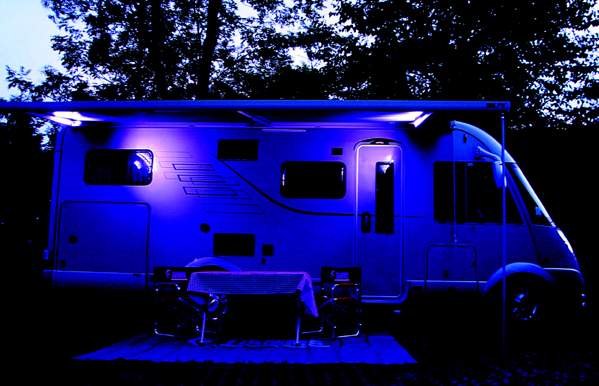 An den (Gelenk-)Armen der Markisen werden die neuen LED-Beleuchtungseinrichtungen von Fiamma angebaut. Die LED-Lichtpunkte sollen ein angenehmes weißes Licht ausstrahlen, bei geringem Stromverbrauch und ohne Erhitzung. Ebenfalls neu im Programm: Eine aus 31 LED-Lichtpunkten bestehende Außenleuchte für die Markise, die unter deren oberer Kante – oder auch im Innenrau des Reisemobils oder Caravans) montiert wird.