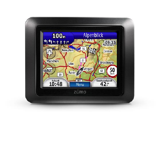 Die Funktionen des Zumo 220 zeigen, dass bei Garmin erfahrene Motorradfahrer in den Entwicklungsabteilungen sitzen: Bei einem Gewicht von 210 Gramm, mit edlem schwarzen Gehäuse und einem schlanken 3,5 Zoll-Display ausgestattet, erreicht das Gerät, wenn es nicht an die Stromversorgung des Motorrades angeschlossen ist, eine Batterielaufzeit von bis zu sieben Stunden. Zwei individuell belegbare Datenfelder ermöglichen die persönliche Konfiguration der Kartenansicht mit Informationen wie beispielsweise Ankunftszeit, verbleibende Reisezeit, Durchschnittsgeschwindigkeit, Fahrtrichtung und aktuelle Höhe. Die Steuerungselemente lassen sich dabei auch gut mit Motorradhandschuhen bedienen. Das extrem robuste und wasserdichte Gerät enthält vorinstallierte Straßenkarten von 41 europäischen Ländern und wird sowohl mit einer KFZ- als auch mit einer speziellen, extrem stabilen Motorradhalterung geliefert. Mit der Halterung sind auch Fahrten abseits asphaltierter Straßen kein Problem.