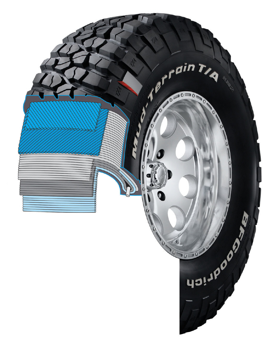 Bei der Entwicklung des neuen Hightech-Reifens legten die Ingenieure Wert auf außergewöhnliche Robustheit. So soll der Pneu nahezu jedes Hindernis auf grobem, unebenem, matschigem oder steinigem Untergrund überwinden. Der BFGoodrich Mud Terrain T/AKM2 verfügt über drei unterschiedliche Technologien, die seine Robustheit und Widerstandsfähigkeit ermöglichen: massive Profilstollen auf der Reifenflanke, eine kerb- und schlagzähe Gummimischung sowie verstärkte Cordwicklungen auf Reifenschulter und -flanke. Die Wirksamkeit dieser Technologie belegen zahlreiche Siege bei Offroad-Rennen unter extrem schwierigen Bedingungen.