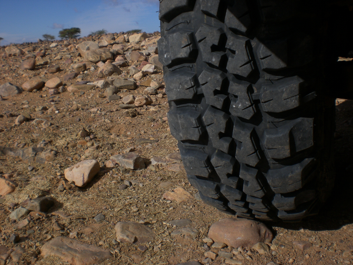 Weiter geht es über den Atlas, so weit es eben im Januar geht. Hier warten auf den Couragia MT Felsen, Geröll und Pisten in Flussbetten der unterschiedlichsten Beschaffenheit. Die Pisten sind teilweise der reinste Horror für die Reifen. Grob und scharfkantig sind die Steine, sie schlitzen schon mal gerne einen Pneu auf. Sträucher in den Ebenen und ihre Dornen sind weitere Möglichkeiten, sich einen Plattfuß einzuhandeln. Hier muss der Reifen zeigen ob er den richtigen Biss hat. Wir werden positiv überrascht. Und hatten auf unserer sechswöchigen Reise keinen einzigen Platten. Auf schwierigem Gelände, in dem wir auf die Traktion der Reifen angewiesen sind, haben wir keine Probleme mit durchdrehenden Reifen. Die Verschränkung unseres Fahrzeugs ist ganz ordentlich für einen Pick-Up und beschert und mit den Reifen perfekte Traktion. Während und nach der Reise kontrollieren wir die Reifen auf Schäden. Wir können keinen Verschleiß am Reifen feststellen, der nicht auch bei etablierten Reifenmarken entstanden wäre.
