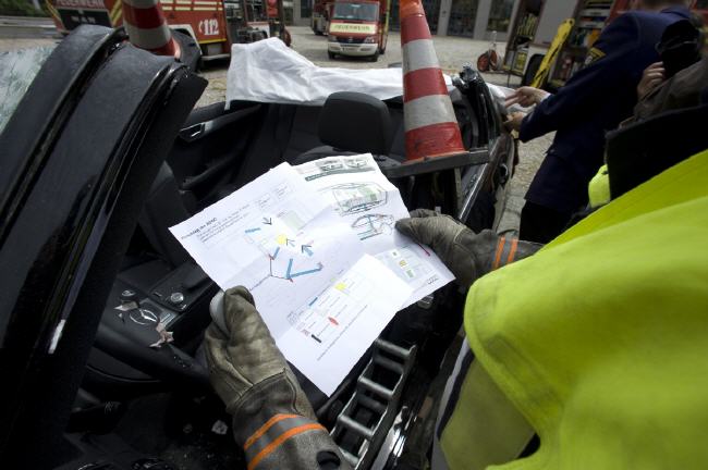 Für die überwiegende Mehrzahl der gängigen Modelle findet man die Rettungskarte im Internet unter www.rettungskarte.de. Der Club empfiehlt, die Daten herunter zu laden, sie auszudrucken und auf der Fahrerseite hinter der Sonnenblende zu deponieren.