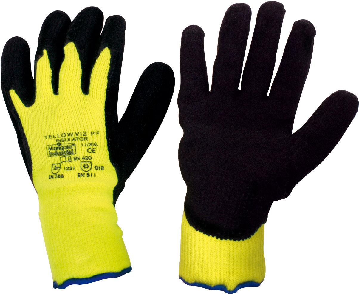 Da niedrige Temperaturen häufig mit Feuchtigkeit einhergehen sind die Arbeitsfläche der Handschuhe mit wasserdichtem Naturlatex beschichtet, so bleiben die Hände bei der Arbeit trocken. Damit auch von innen nichts auskühlen kann, ist der Handschuhrücken als offenes, atmungsaktives Gewebe ausgebildet und reduziert so die Schweißbildung. Geprüft auf mechanische Sicherheit nach DIN EN 388 und Europäischer Handschuhnorm, packen die Latex-Arbeitshandschuhe auch in Härtesituationen zu. Egal ob auf dem Bau, im Transportgewerbe oder in der Kfz-Werkstatt ... Verfügbar sind die Handschuhe in den Größen 9 bis 11, jeweils als Sechserpaare.