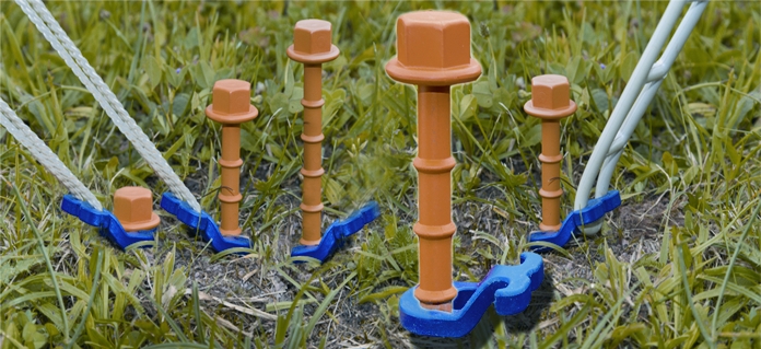 Die Schraubheringe von Peggy Peg sollen wesentlich leichter als herkömmliche Metallheringe sein und vielfach besseren Halt bieten – sowohl in weichen, sandigen Böden als auch in hartem Untergrund. Die Heringe sind aus glasfaserverstärktem, UV-beständigem Kunststoff gefertigt. Sie sollen robust sein und sich auch in steinigen Böden bequem einsetzen lassen.