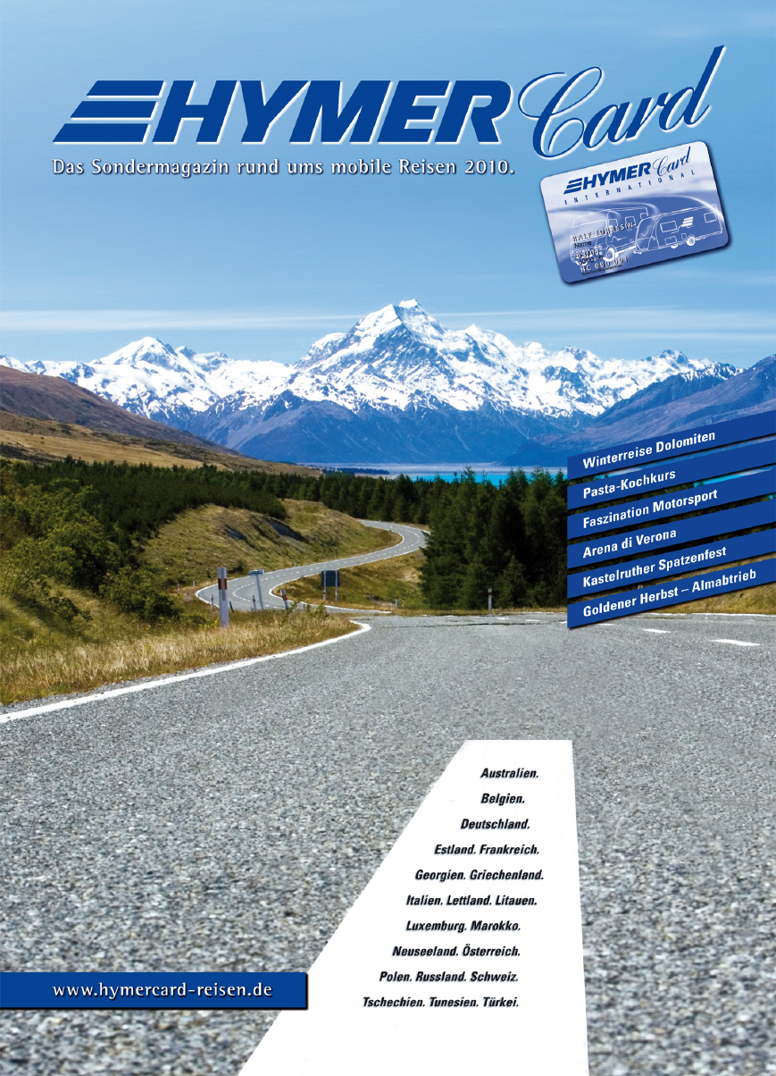 Seit Anfang August ist der HymerCard-Reisen-Katalog neu auf dem Markt. Erstmals gibt es diesen Katalog als Kombi-Version (insgesamt 72 Seiten) zusammen mit dem aktuellen HymerCard-Magazin.