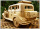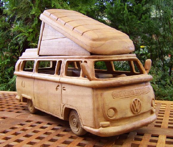 Begonnen hat es, wie könnte es bei Manfred Klee anders sein, mit Modellen des VW Bus. Mit dem Koblenzer Architekten reisen nämlich auch ein Plastik-Modell eines VW Bus im Maßstab 1:43, mehrere Fotos einzelner Bullis sowie Schnittzeichnungen und Detailaufnahmen nach Sumatra, zur Vorlage für den Schnitzer. Denn der hat noch nie in seinem Leben einen „richtigen“ VW Bus gesehen, kennt aber jetzt die Unterschiede zwischen T1, T2, T3 und T4 – und machte sich sofort ans Werk. Jedes einzelne Modell ist ein Kunstwerk für sich und entsteht in vier bis sechs Wochen Arbeit, geschnitzt vom Morgen bis spät in die Nacht, detailgetreu bis hin zum Blinkerhebel. Zur Unterstützung des Schnitzers in Sumatra bietet Manfred Klee die Modelle jetzt auch in Deutschland zum Kauf an. Der Handwerker in Sumatra braucht zum Schnitzen (bei Fahrzeugen, welche er bisher nicht geschnitzt hat) ein entsprechendes Modell, möglichst im Maßstab 1:18, außerdem aussagekräftige Fotos vom jeweiligen Fahrzeug und dessen Abweichungen gegenüber dem Modell. Wichtig sind insbesondere Aufnahmen von individuellen Details, etwa von Felgen, Dachform, Aufklebern, Auspuffanlagen, veränderten Armaturen, also allen Punkten, in denen das zu schnitzende Fahrzeug vom Serien- oder Modellzustand abweicht. Der Preis für ein Holzmodell liegt bei 310.- Euro, hinzu kommen 60.- Euro für Verpackung, den Versand von Indonesien nach Deutschland sowie die Zollgebühren. Die Modelle sind rund 50 bis 60 cm lang, etwa 22 cm breit und 20 cm hoch und rund acht bis zehn Kilogramm schwer. Mit Herstellung und Versand muss man mit einer Lieferzeit von etwa vier Monaten rechnen. Mit der Bestellung eines solchen Holz-Modells erhält man nicht nur ein absolutes Unikat, sondern sichert mit dem Preis auch für mehrere Monate einer zehnköpfigen Schnitzer-Familie in Sumatra den Lebensunterhalt. Bestellung gehen an: VW-Bus-Club Koblenz, Erlenweg 1, D - 56323 Waldesch.