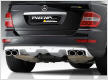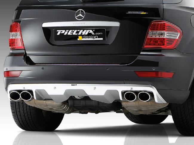 Für das Fahrzeugheck gibt es einen RS-Heckdiffusor (485 Euro), speziell auf die Piecha Quadro-4-Rohr Auspuffumrüstung (398 Euro) ausgelegt. Letztere besteht aus zwei verchromten Doppelrohr-Endstücken, die einfach an die Serienschalldämpfer geschraubt werden. Der RS-Heckdiffusoreinsatz wird ebenfalls gegen den Originaleinsatz ausgetauscht und passt für GL- und ML-Modelle nach der 2008-er Modellpflege. Eine Rückrüstung in den Serienzustand soll einfach zu bewerkstelligen sein, wichtig bei Leasingfahrzeugen. Der Heckdiffusor kann auch an Fahrzeugen mit Anhängerkupplung montiert werden. Eine entsprechende Markierung ist bereits im Bauteil eingebracht, an der die Öffnung ausgeschnitten werden muss. Weitere Infos: www.piecha.com.