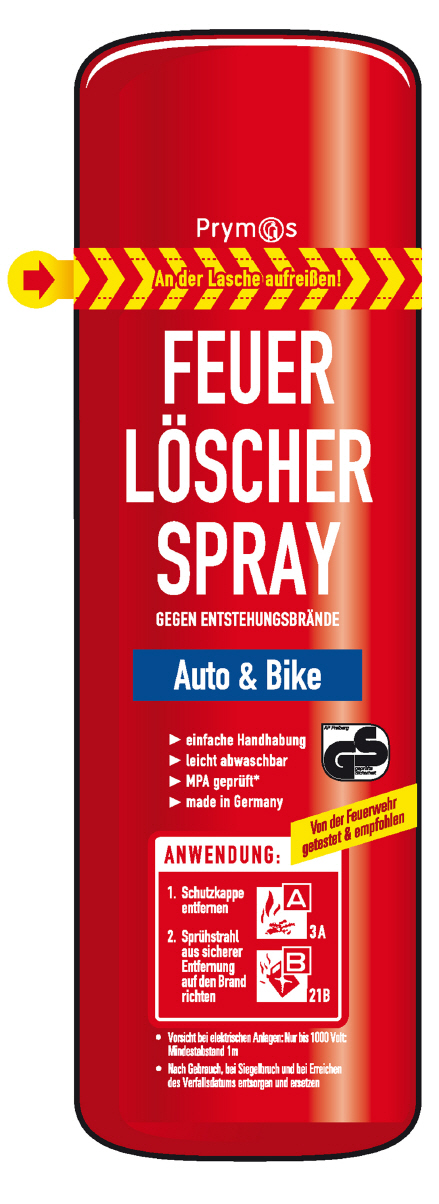 Arbeitstemperaturen von minus 15 bis plus 60 Grad Celsius. So kann der Prymos im Auto, Wohnwagen oder der Garage gelagert werden. Er hat die Ausmaße einer handelsüblichen Spraydose und kann ohne großen etwa im Kofferraum oder mit Hilfe einer Halterung in Garage, Wohnwagen oder Wohnmobil angebracht werden. So ist der Feuerlöscher genau dort griffbereit, wo Brände am ehesten entstehen können. So gehen keine wertvollen Sekunden mit der Suche nach einem Feuerlöschgerät verloren.