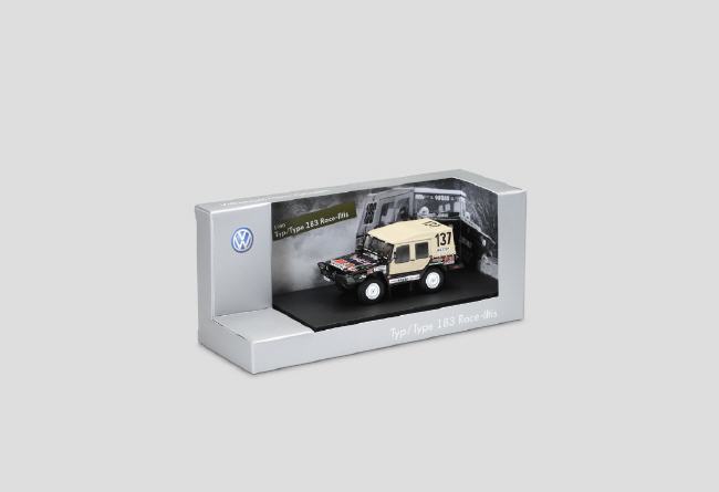 Ein echtes Schmankerl ist der in schwarz/sand gehaltene Race-Iltis, der Typ 183 (ab 1978). Selbst wenn der Iltis auf den ersten Blick kaum einer Rennsport-Ikone ähnelt: Mit dem 110 PS starken Race-Iltis schrieb Volkswagen Motorsportgeschichte und läutete einen Paradigmen-Wechsel im Rallye-Sport ein.
