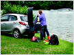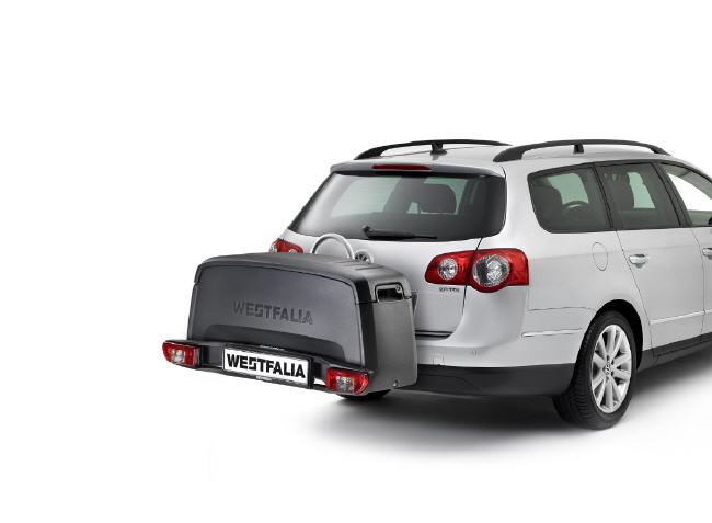 Die wasserdichte PortiloBox (Außenmaße 1170 x 600 x 425 mm B/H/T) kann einen Inhalt von 200 Litern aufnehmen, die maximale Zuladung liegt bei 45 kg. Dank Rollen an der Unterseite lässt sich die PortiloBox wie ein Trolley auch mit Inhalt von der Garage zum Auto ziehen und mittels eines Schnellverschlusses auf dem Fahrradträger aufsetzen. Gegen Diebstahl ist der Inhalt der Box durch einen abschließbaren Deckel, ebenso wie die Box selber, gesichert. Falls größere Gegenstände transportiert werden sollen, lässt sich der Deckel abnehmen. Durch die tiefe Position hinter dem Fahrzeug liegt die PortiloBox im Windschatten, wodurch sie verbrauchs- und CO⊃2;-effizient sein soll. Unverbindliche Preisempfehlung: 349 Euro, der Fahrradträger Portilo kostet 428 Euro, eine Erweiterungsschiene zum Transport eines dritten Fahrrads ist für 129 Euro zu haben. Weitere Infos: www.westfalia-portilo.de.