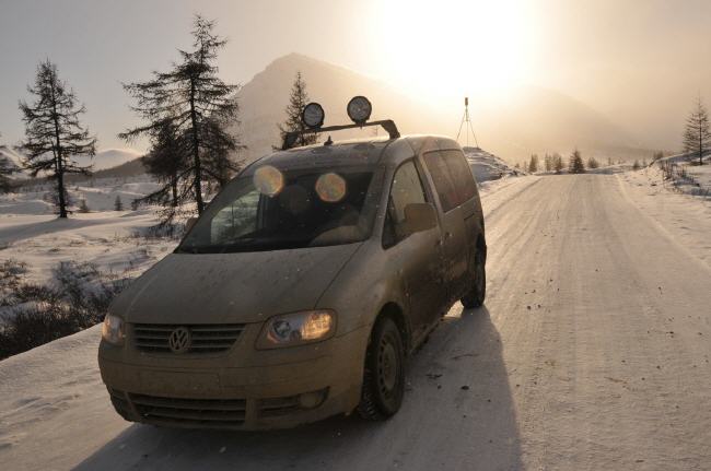 Das Caddy Maxi 4Motion-Team Matthias Göttenauer und Andreas Renz startete am 2. Oktober 2009 um 12.00 Uhr (GMT) in Portugal am westlichsten Punkt des europäischen Festlandes. Während der ersten beiden Tage durchfuhr das Team die europäischen Staaten Portugal, Spanien, Frankreich, Deutschland, Polen, Lettland und Litauen, bevor der Großteil der Strecke in Russland zurückgelegt wurde. Den Zielort Magadan erreichten Göttenauer und Renz am Morgen des 11. Oktober 2009 um 1:30 Uhr (GMT), 13.30 Uhr Ortszeit. „Bei unseren Planungen galten zehn Tage als unrealistisch“, betont Renz. „Der große Allrad-Caddy bewies aber auf den besonders schwierigen Strecken enormes Stehvermögen und war so der Garant für diese tolle Zeit. Die Zuverlässigkeit, die robuste Bauweise und die riesige Reichweite haben den Caddy zu unserem dritten Teammitglied werden lassen.“ Der erste Teil der Strecke führte den Caddy Maxi 4Motion über Autobahnen und asphaltierte Straßen, auf denen das Fahrzeug schnell und komfortabel voran kam. Je weiter die Route Richtung Osten führte, desto maroder wurden auch die Fahrbahnbeläge. Besonders die letzten 5.000 Kilometer waren eine Herausforderung für Fahrzeug und Fahrer. Die Straßenverhältnisse in Zentral- und Ost-Russland waren größtenteils unbekannt. Holprige Teerstraßen mit tiefen Schlaglöchern, grobe Schotterwege und matschige Lehmpfade mit tiefen Lkw-Fahrspuren waren für den allradangetriebenen Caddy Maxi kein Problem. Das Nutzfahrzeug, das während der Nonstop-Fahrt auch gleichzeitig als Schlafstätte für Göttenauer und Renz diente, bewältigte auch die unwegsamsten Untergründe. Und das bei extremen Dauerbelastungen für Motor, Getriebe und Karosserie. „Der Allrad-Caddy hat seine On- und Off-Road Fähigkeiten eindrucksvoll unter Beweis gestellt“, so Göttenauer nach der Ankunft in Magadan. „Motor und Getriebe sind perfekt aufeinander abgestimmt, auch bei niedriger Drehzahl hat der 1,9l-TDI viel Kraft. Dass wir diese harte Strecke mit dem Caddy Maxi 4Motion, einem Serienfahrzeug, in Rekordzeit gefahren sind, spricht für die Qualität der Produkte von Volkswagen Nutzfahrzeuge.“